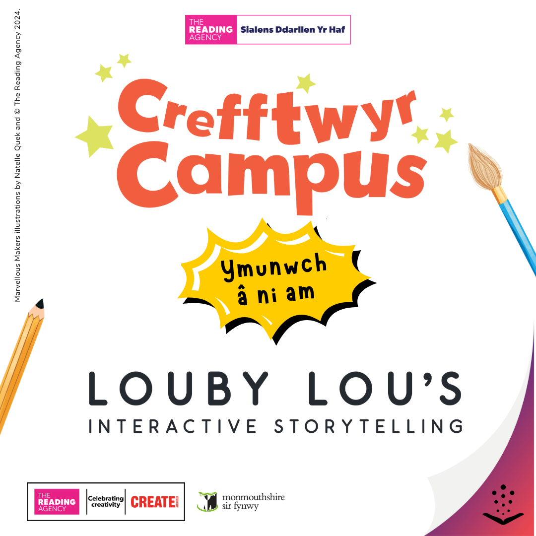 Ymunwch â ni yng Nghil-y-coed am sesiwn adrodd straeon ryngweithiol gyda’r hyfryd Louby Lou i ddathlu Sialens Darllen yr Haf eleni, Crefftwyr Campus!