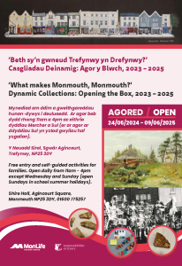 This exhibition is part of our project, ‘Dynamic Collections: Opening the Box’, funded by the National Lottery Heritage Fund. It is on display at Monmouth Shire Hall until 31 May 2025. For this exhibition, we invited different local communities to ‘open the box’ to our collection and discover new points of view. Each person chose an object they think tells the story of Monmouth for them. Alongside their chosen objects you can also explore their personal stories. The exhibition includes many objects, photographs and paintings that have never been displayed before.
